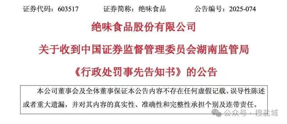 湖南证监局查实,绝味食物正在2017年至2021年期间,未确认加盟门店拆修营业收入,导致年报少计营收。少计比例最高达5。48%(2017年),虽逐年下降,但持续五年存正在系统性财政目标虚假记录。公司被处以400万元罚款,实控人戴文军等高管合计被罚450万元,合计850万元。股票自9月23日起变动为“ST绝味”,进入风险警示板买卖。